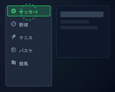 ブックメーカーにログインし、左メニューやトップバーから賭けたいスポーツを選択。その後リーグや大会を選びます。