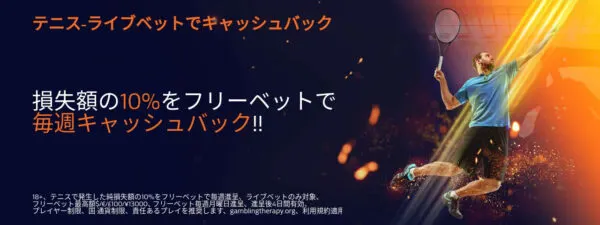 時期によって異なるプロモーションが提供されます。例えば「テニスライブベット負け時に損失額の10%をフリーベットでキャッシュバック」など、損失を軽減できるキャンペーンがあります。