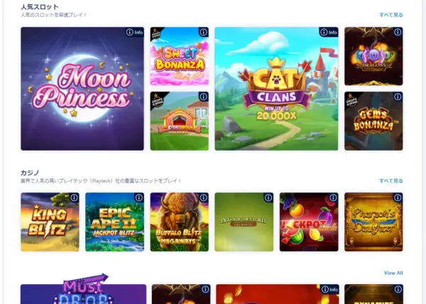 スポーツベッティングだけでなく、スロット、テーブルゲーム、ライブカジノ、ポーカー、ビンゴなど多様なカジノゲームも提供しています。