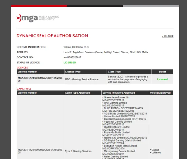 はい。1934年創業の老舗ブックメーカーで、マルタゲーミング委員会(MGA)のライセンスを取得しています。イギリスに2,400以上の実店舗を持ち、上場企業として高い信頼性を誇ります。