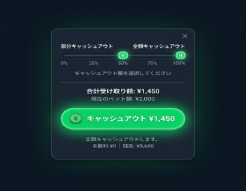 試合終了前にベットを精算する機能。予想が当たりそうなら利益確定、外れそうなら損切りに使えます。株式投資の感覚で資金管理が可能。