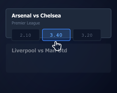 どのスポーツでも基本の流れは同じです。スポーツ選択 → 試合選択 → オッズ選択 → 賭け金入力の4ステップ。