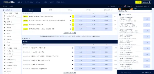 他のブックメーカーではまだオッズが出ていない試合でも、ウィリアムヒルならいち早く提供されています。得点反映も「Jスポーツの中継より速い」との報告もあります。
